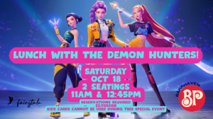 Join Fairytale Princess Parties for a lunch with the KPop Demon Heroes on October 18th at 11am or 12:45pm