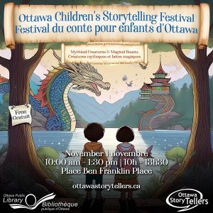The Ottawa Children’s Storytelling Festival returns on November 1st for its 31st year. Don’t miss the Mythical Creatures & Magical Beasts edition featuring stories, activities and crafts throughout the day from 10:00 am-1:30pm.