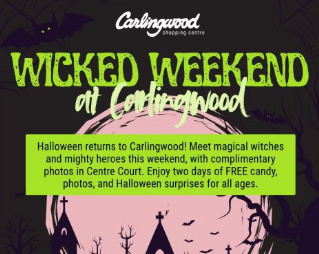 Halloween returns to Carlingwood! Meet magical witches and mighty heroes this weekend, with complimentary photos in Centre Court. Enjoy two days of FREE candy, photos, and Halloween surprises for all ages.
